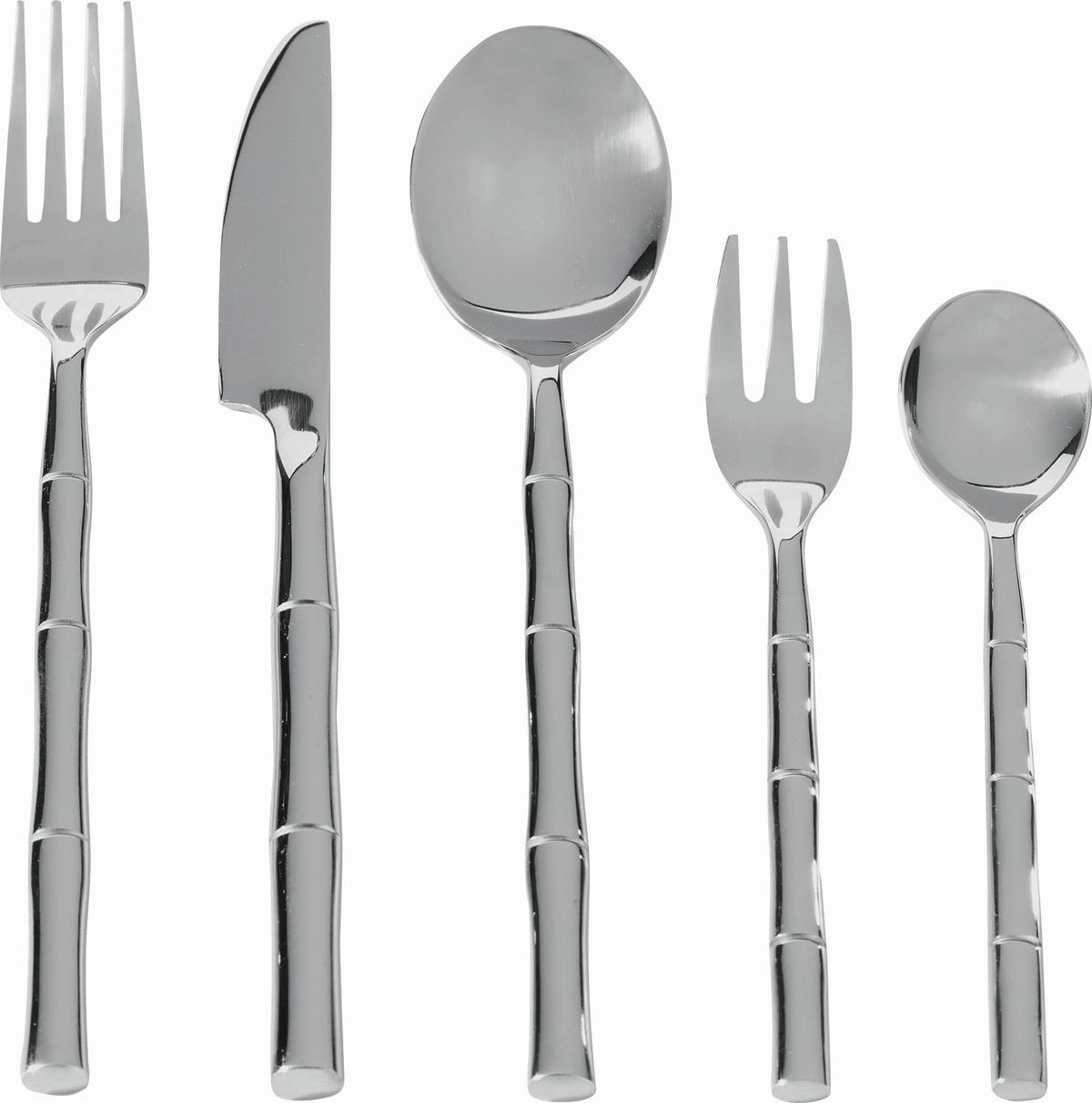 Eleganten, 30-delni jedilni pribor za šest oseb iz visokokakovostnega nerjavečega jekla v visokem sijaju, ki je primeren tudi za pranje v pomivalnem stroju. Set sestavlja 6 nožev, 6 vilic, 6 žlic, 6 kavnih žličk in 6 desertnih vilic.